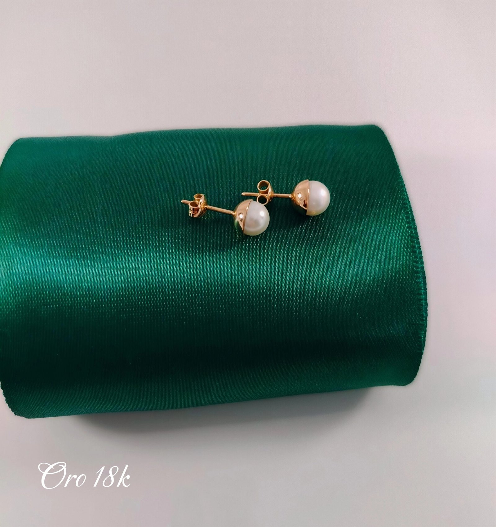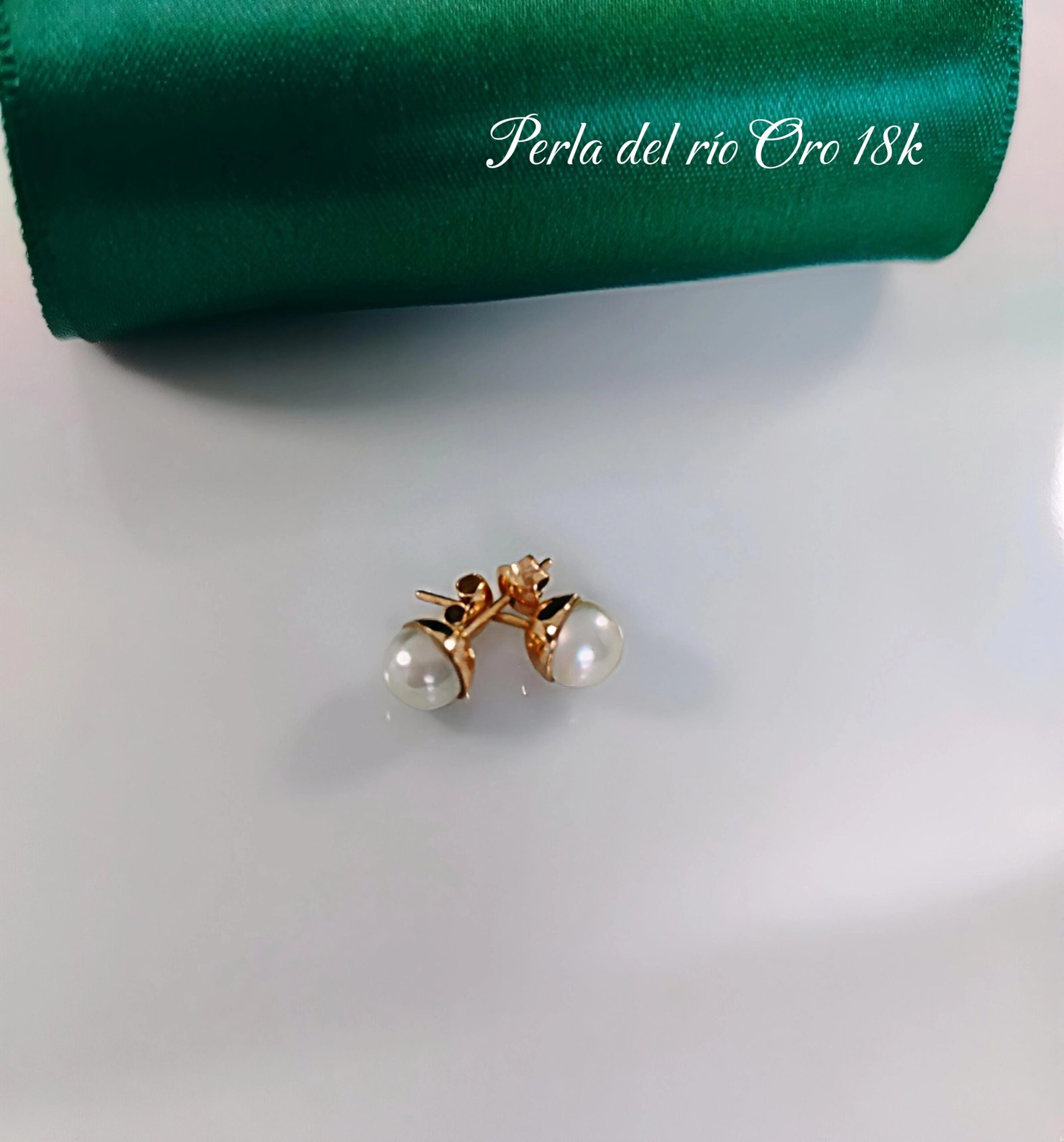 Aretes de oro 18k y perla del Río Hipoalergénicos ideal de usos diario en niños adolescente y adultos.