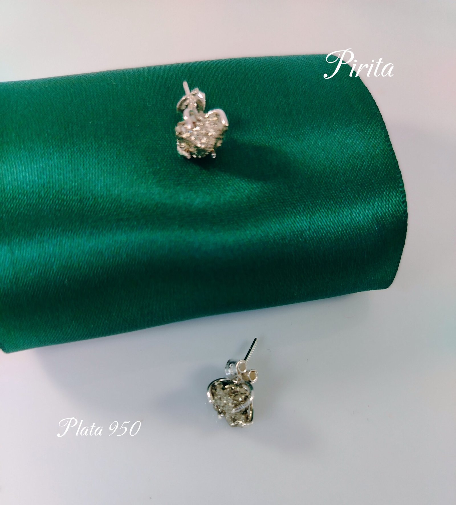 Aretes pirita hechos a mano con diseño artesanal con forma natural con plata 950