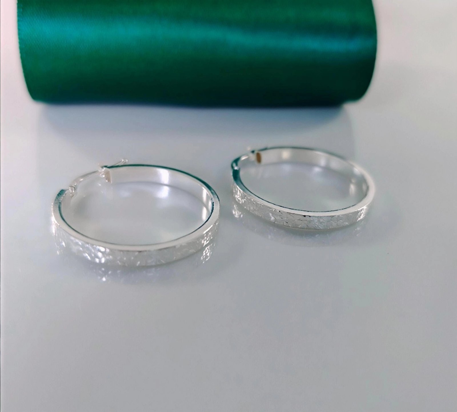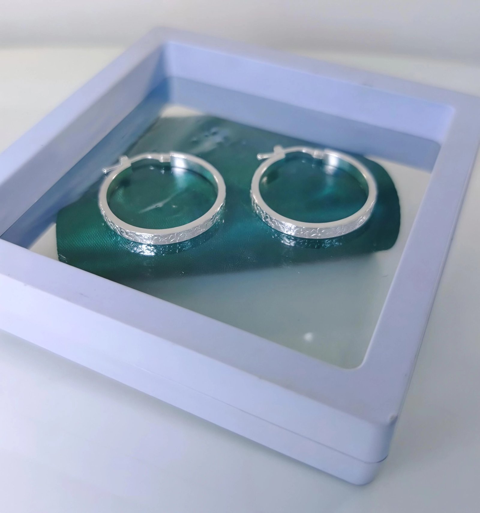 Argolla arete texturado en plata 925 ancha diámetro 2.8cm x 2.8 cm.