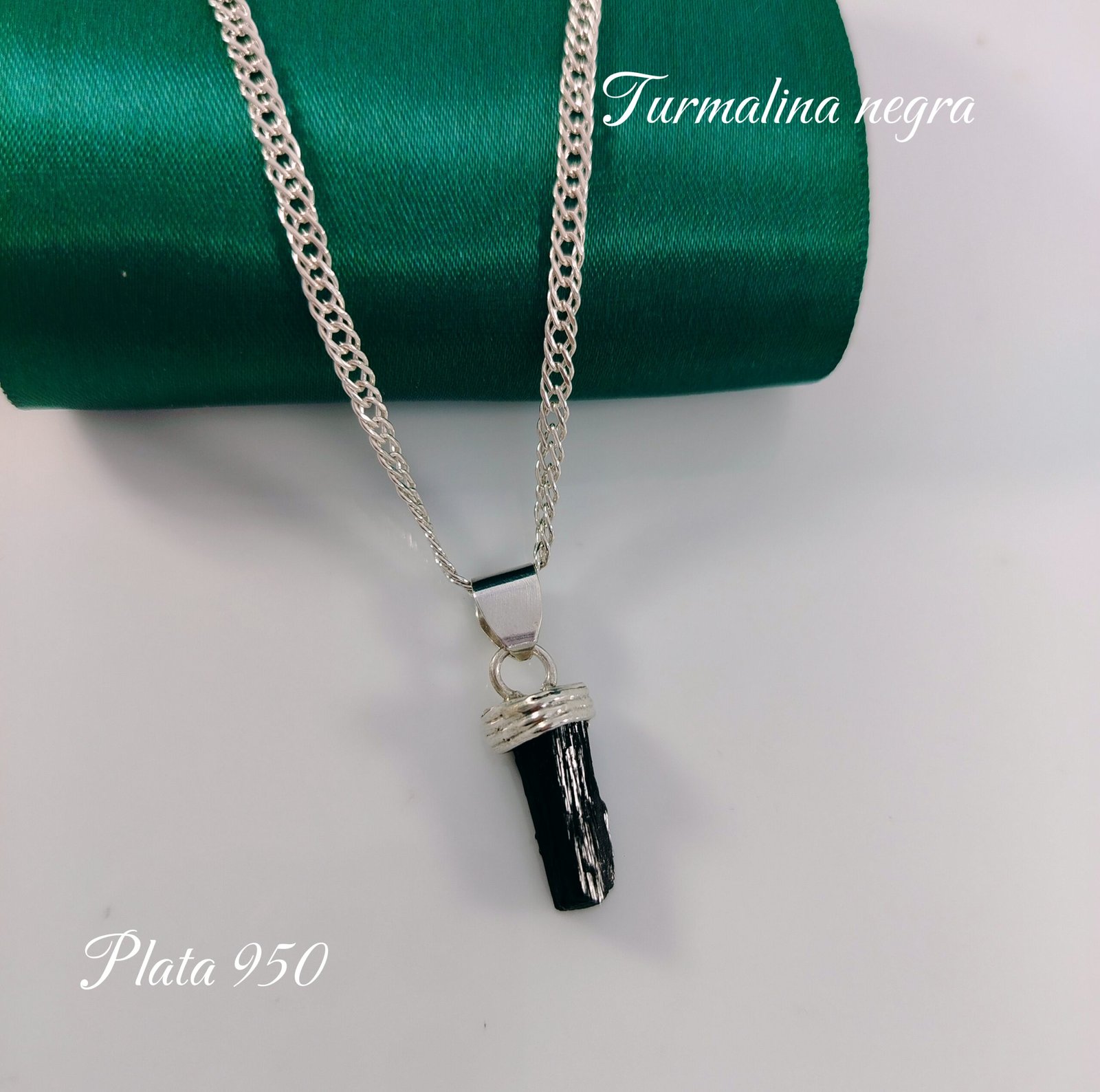 Collar turmalina negra cadena + dije en plata de ley 950 para varon.