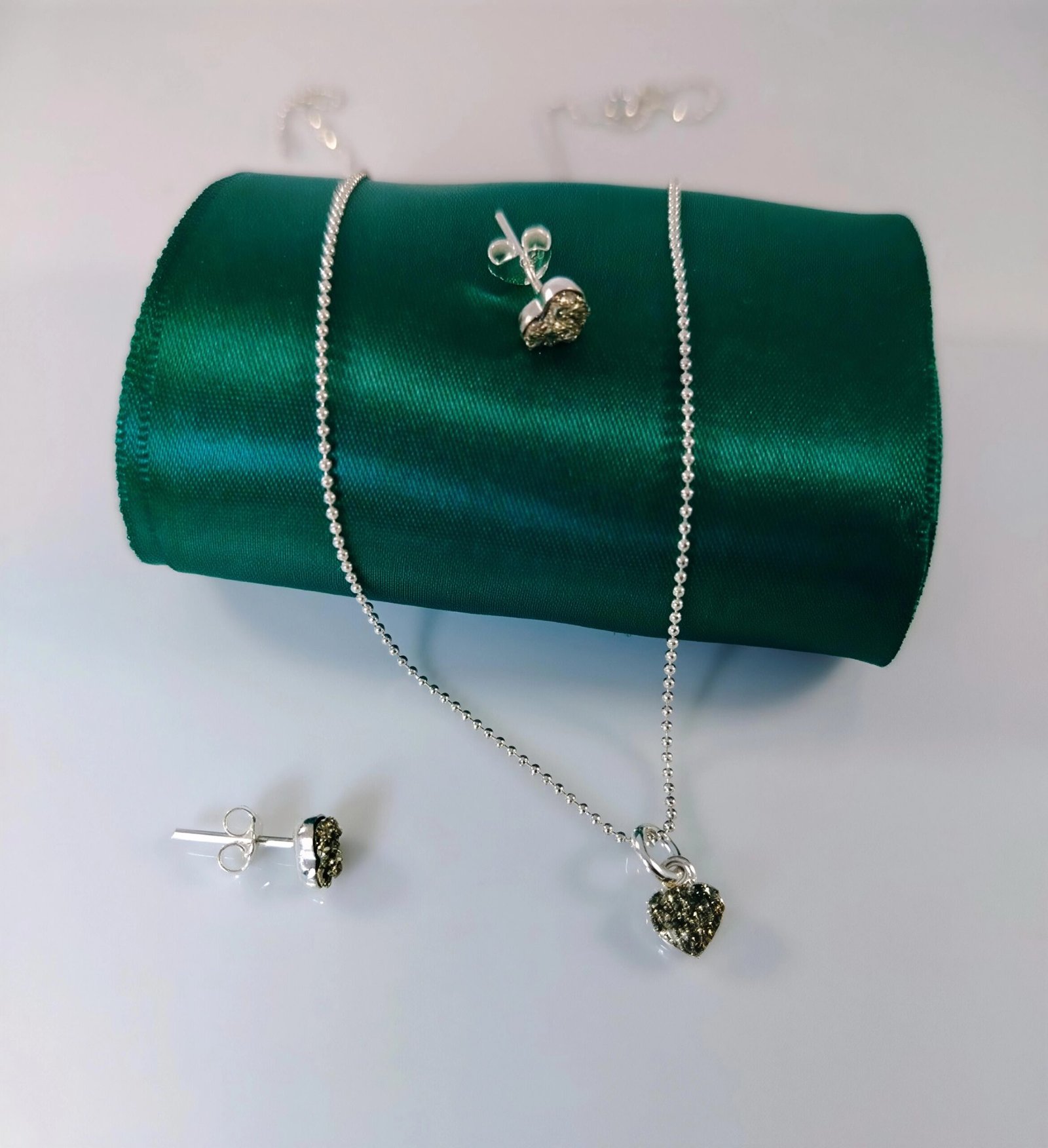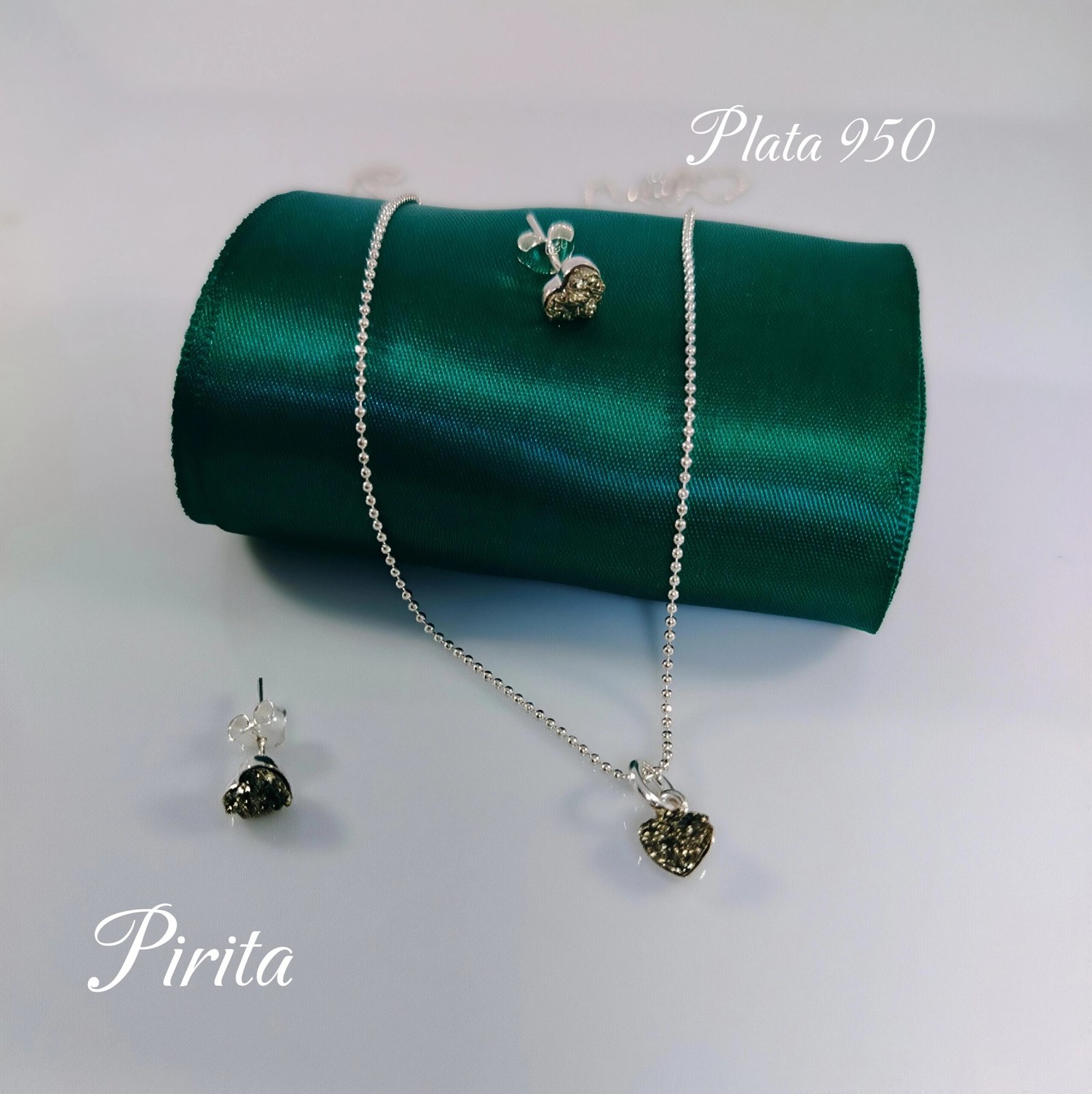 Set pirita minimalista sofisticada, delicada y elegante. diseño en corazón con plata 950 cadena largo 45 cm.