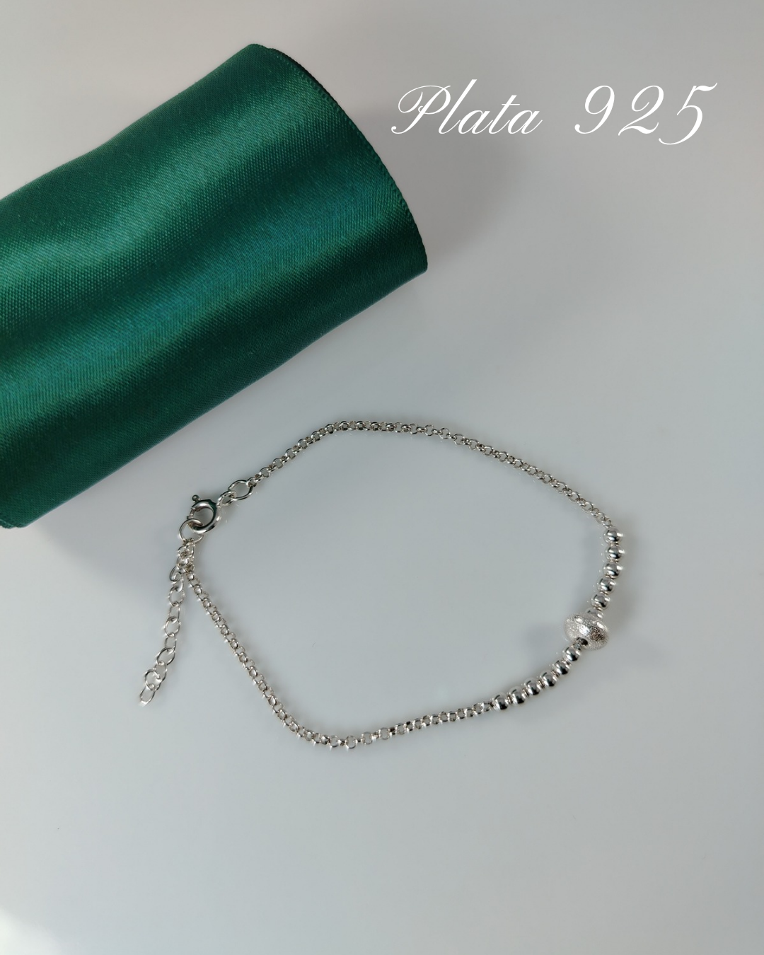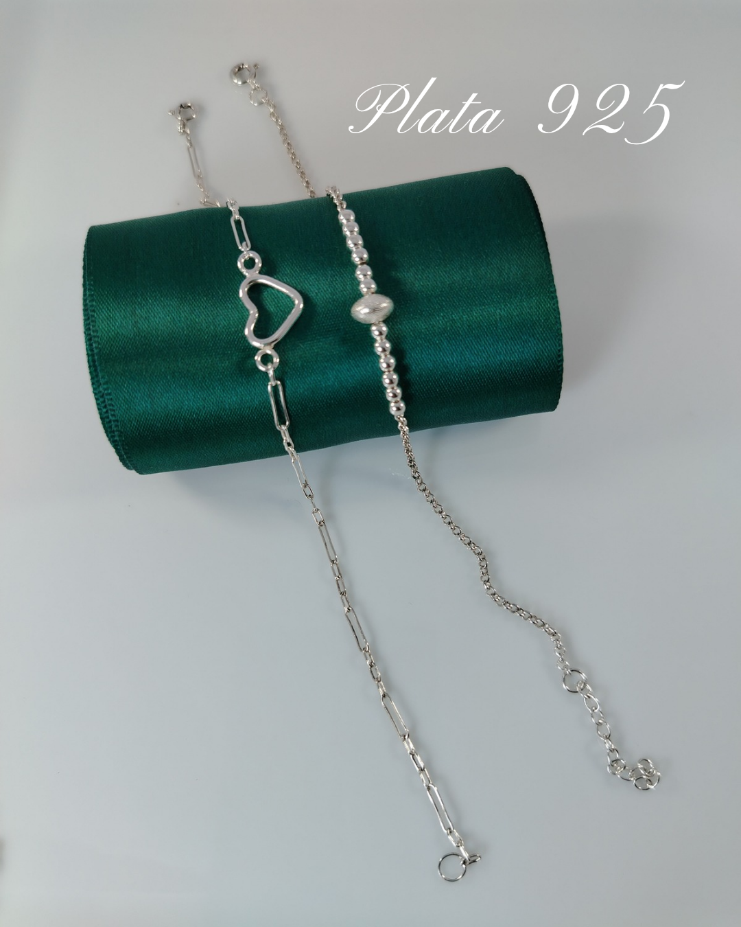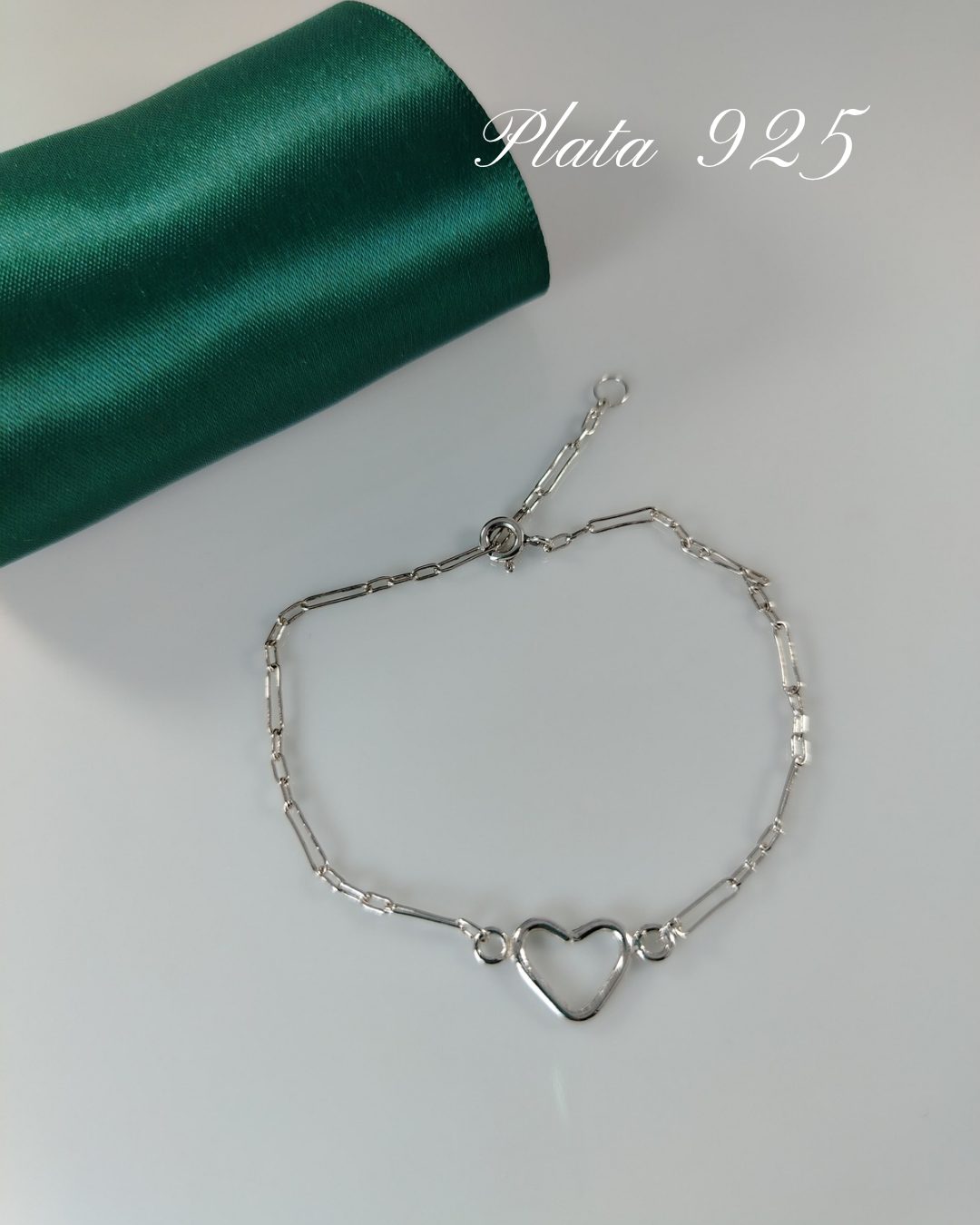 Pulsera Diamantadas y corazón calado en plata 925, largo 19cm gradiables.