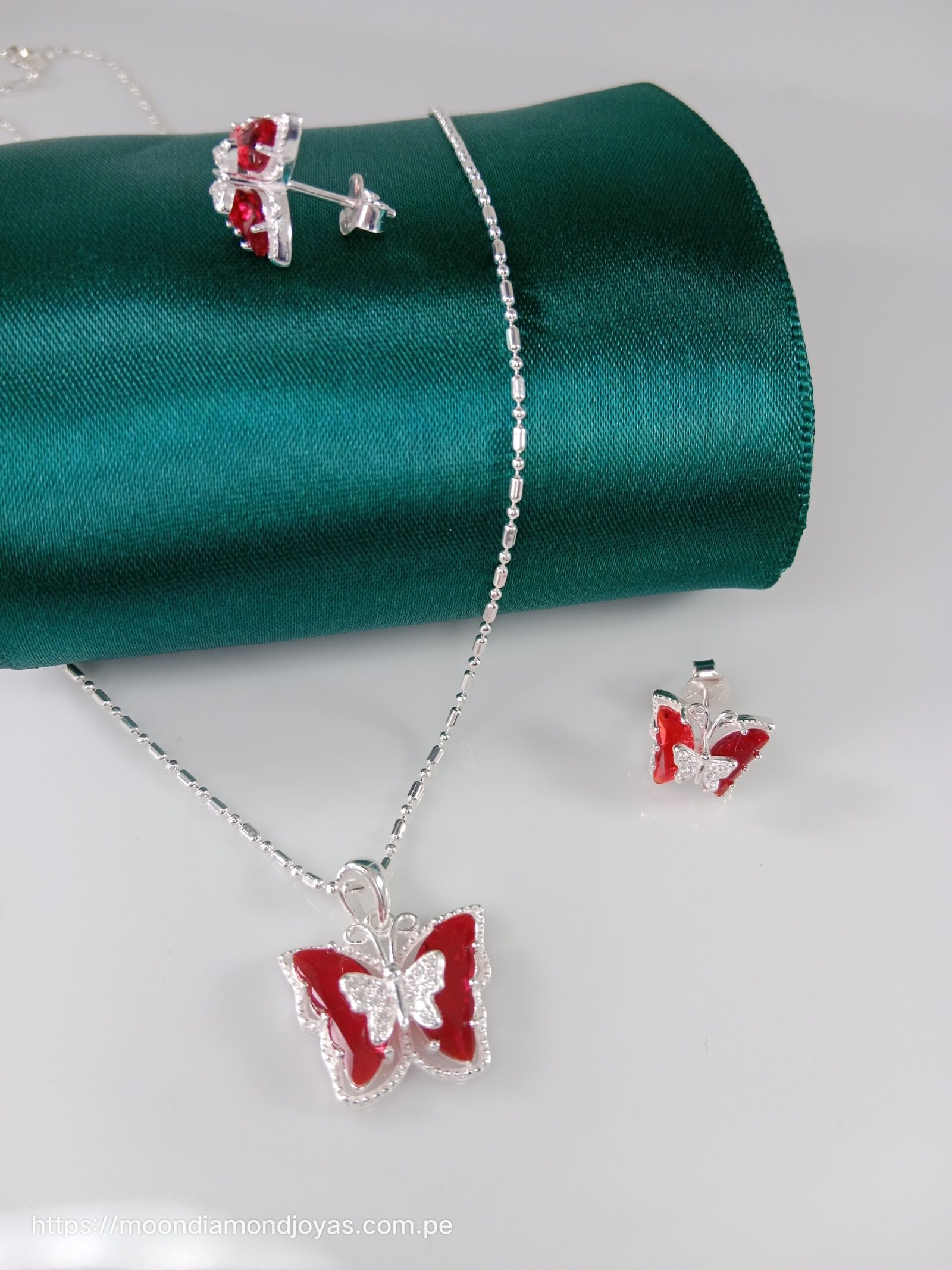 Set Mariposa 🦋 plata 950 Aplicaciónes de zircon verde Cadena largo 45 Cm. 🍀💚✨